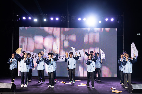 下半場節目同樣精彩紛呈。教師舞蹈《同心共筑中華夢》展現了我校教師的多才多藝;《雪崩》舞蹈力量十足,震撼人心;《何以華夏,何以中國》朗誦聲情并茂,抒發愛國情懷。